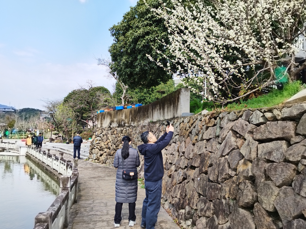 漫步公園時,路邊桃花、茶花也紛紛映入眼簾,還有不知名的小花,為了了解花的名稱,大家拿出手機,用百度“識萬物”功能拍照查詢,“喔,原來這花是梨花”,其中一位員工高興的說到。