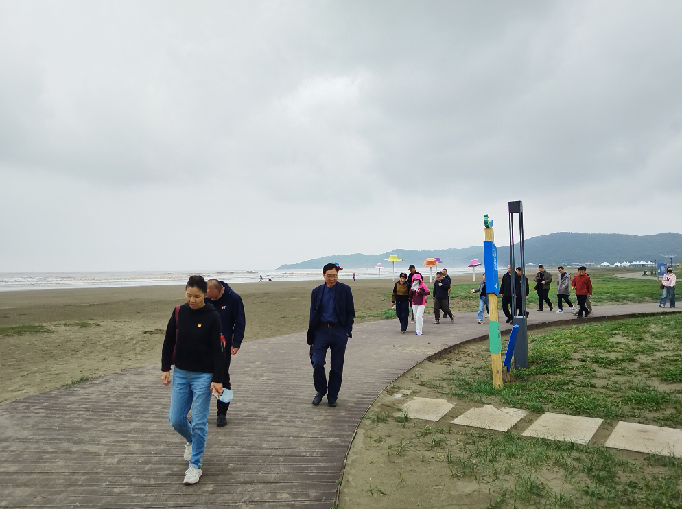 鹿欄晴沙作為江浙沿海最長沙灘,3.6公里的海岸線沙質(zhì)細(xì)膩偏硬、氣勢磅礴,素有“萬步鐵板沙”的美譽(yù)。大家登上觀景高臺(tái),遠(yuǎn)眺東海海浪奔涌,盡覽海岸壯闊風(fēng)光。漫步沙灘,暢談工作感悟、交流生活心得、合影定格美好,在輕松愉悅的氛圍中舒緩身心、增進(jìn)情誼、凝聚共識(shí)。