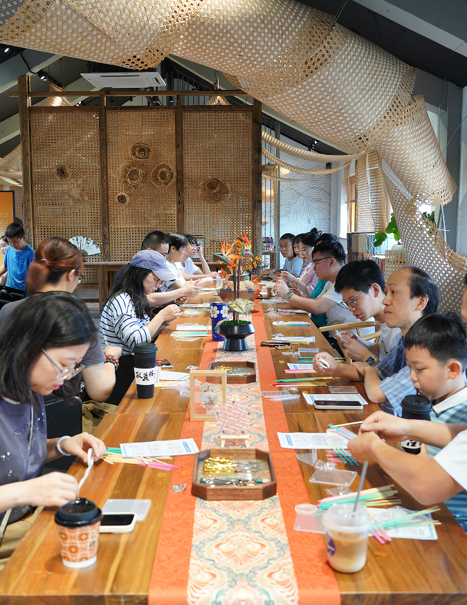 在竹編杯墊手作體驗環(huán)節(jié),現(xiàn)場氣氛熱烈非凡。會員們圍坐在一起,面前擺放著竹篾、剪刀等工具,老師耐心講解、親手示范,大家認真學習,眼睛緊盯著老師的動作,手中的竹篾在指尖穿梭,遇到困難時,大家相互交流、互相請教,經過一番努力,一個個獨具創(chuàng)意的竹編杯墊逐漸成型,有的古樸質感、有的編織成獨特紋理,展現(xiàn)出了會員們的創(chuàng)新思維。圍爐冰茶是夏天的特色項目,大家一邊品嘗著大涼山酸奶,搭配精致茶點和水果,一邊分享工作生活中的趣事。